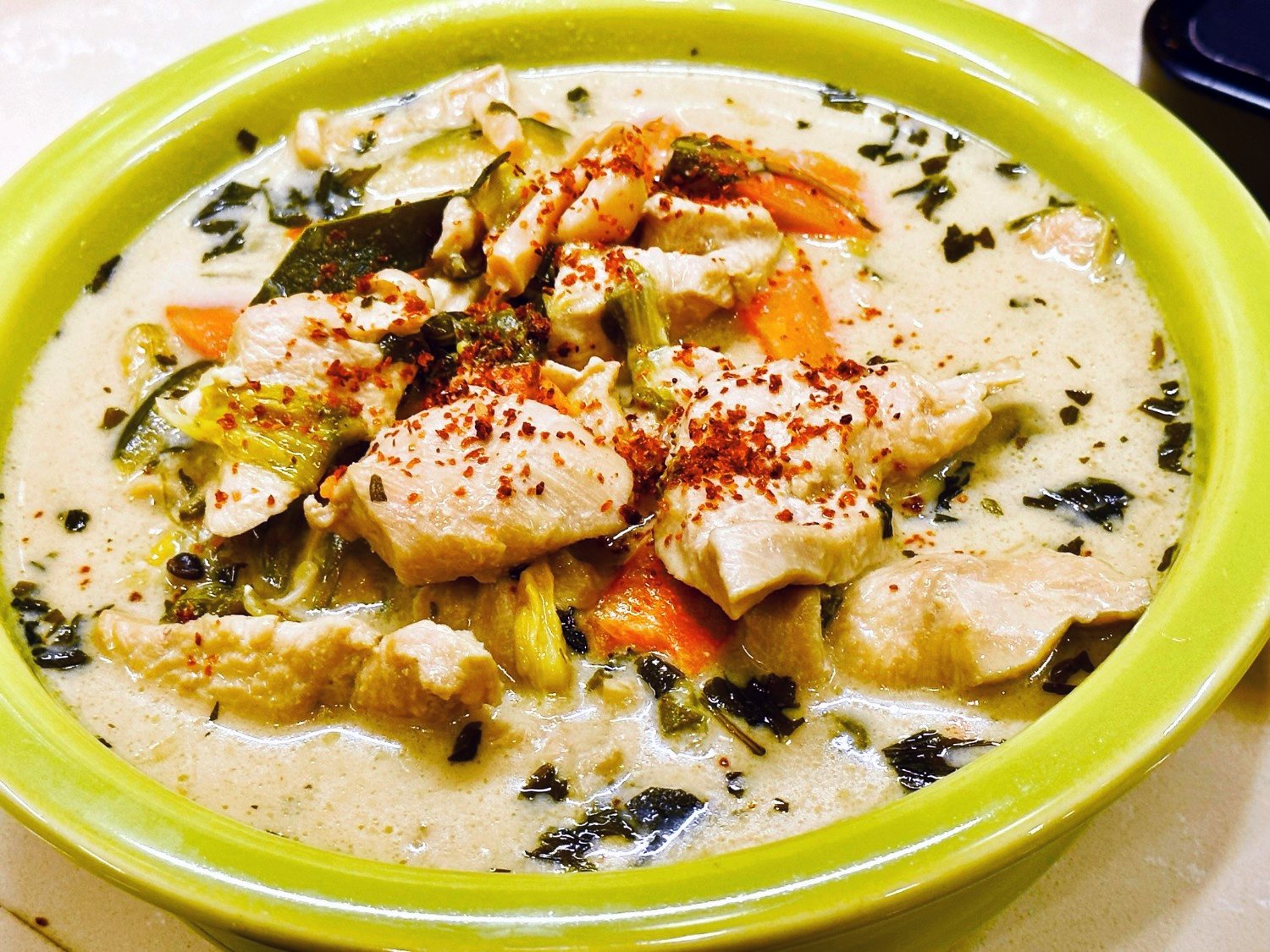 This is the closest I've found to my favorite green curries in Thai restaurants. I make a huge pot of it and freeze it in individual portions. Original recipe from Hot Thai Kitchen.